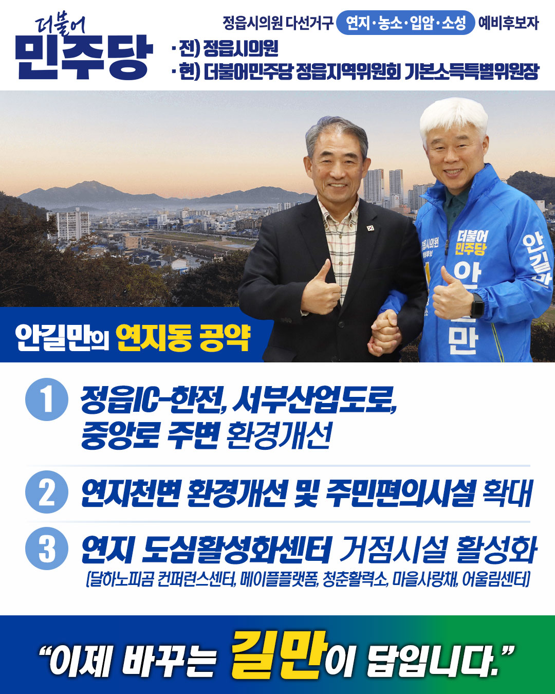 일상이야기 안길만의 일상 생활소식을 알려드립니다. 연지동 공약안내 페이지 정보 작성자 안길만 댓글 0건 조회 18회 작성일 26-04-14 17:42 본문 연지동 공약안내입니다. 목록