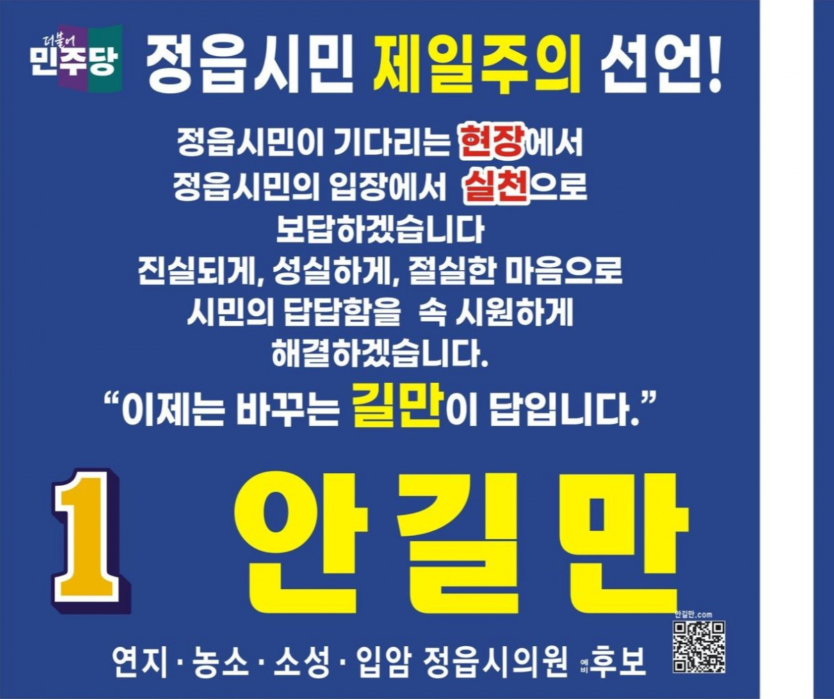 일상이야기 안길만의 일상 생활소식을 알려드립니다. 정읍시민 제일주의 선언! 페이지 정보 작성자 안길만 댓글 0건 조회 3회 작성일 26-03-12 18:54 본문 정읍시민 제일주의 선언! 목록