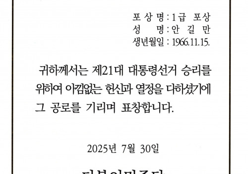 더불어민주당 제21대 대통령선거 1급 포상